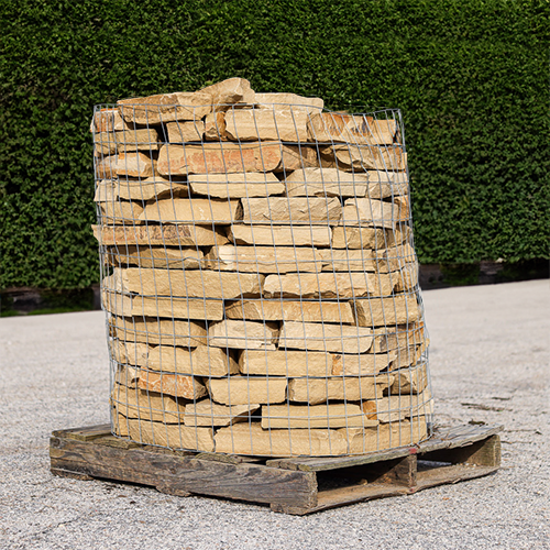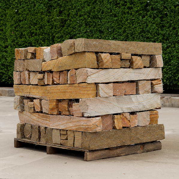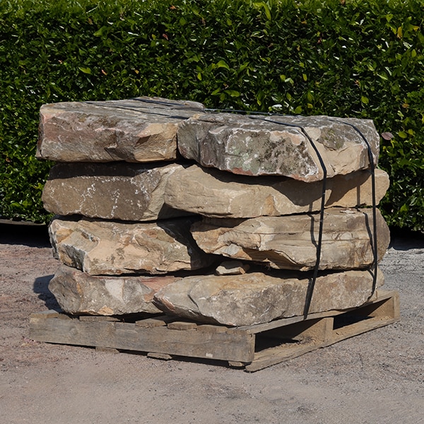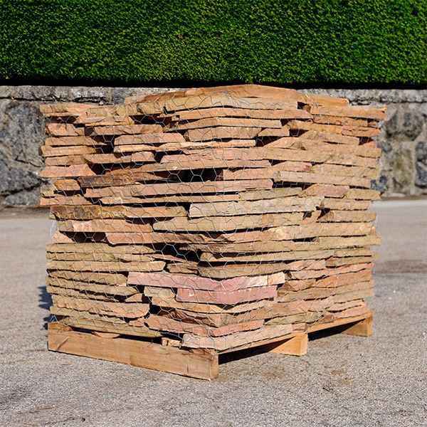 Tennessee Quarry Stack is a flagstone sourced from Tennessee and surrounding regions.Our pallets weigh approximately 1.1 tons (1800 to 2400 lbs) and covers approximately 40 square feet. This product is primarily features a warm, earthy color palette that ranges from light tan and golden browns to deeper, richer tones. Its irregular in shape, perfect for planters, flower beds, as wall stone/stacked walls or veneer.Our quarry stack comes in 1" to 3" thickness, with pieces ranging in size from hand-size to plate size. Please note: This is a natural product, so colors and sizes may vary. Price Per Pallet: