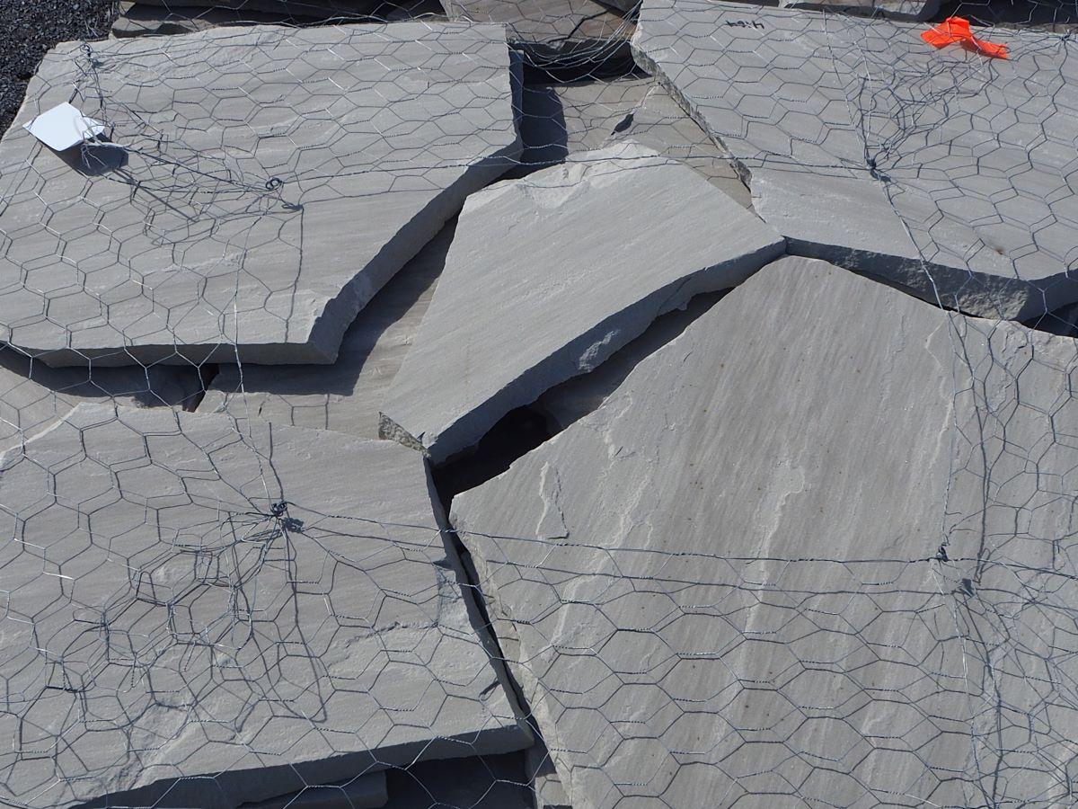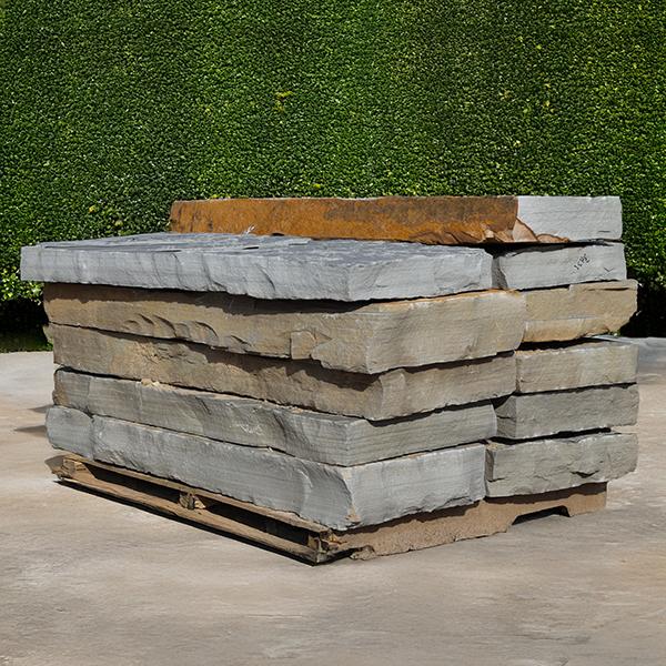 Tennessee Grey Flagstone is sourced from eastern Tennessee. It is naturally grey with occasional streaks of brown, chiseled to 2" to 3" thickness. Our pallets weigh approximately 2 tons, ranging from 3600 to 4300 lbs. The coverage is approximately 120 to 140 square feet with a 2" to 3" thickness.These flagstone pieces can be used to create walkways, patios, and typically used for dry lay. Please note, this is a natural product, so colors may vary. Price Per Pallet:
