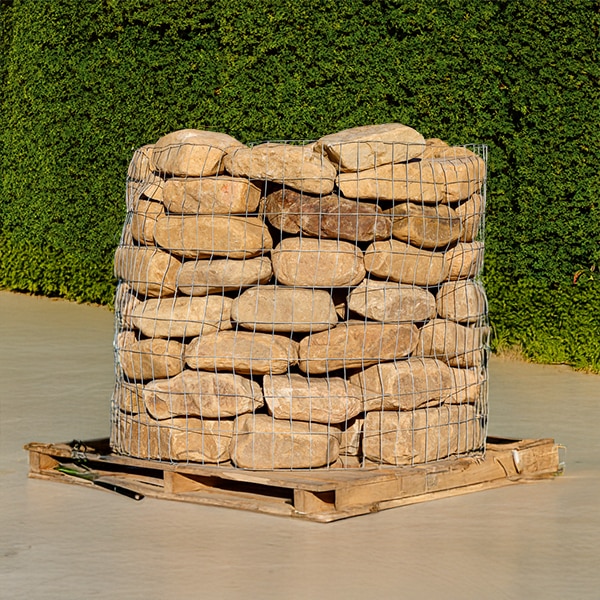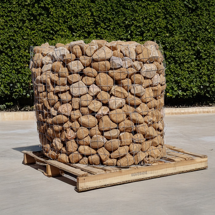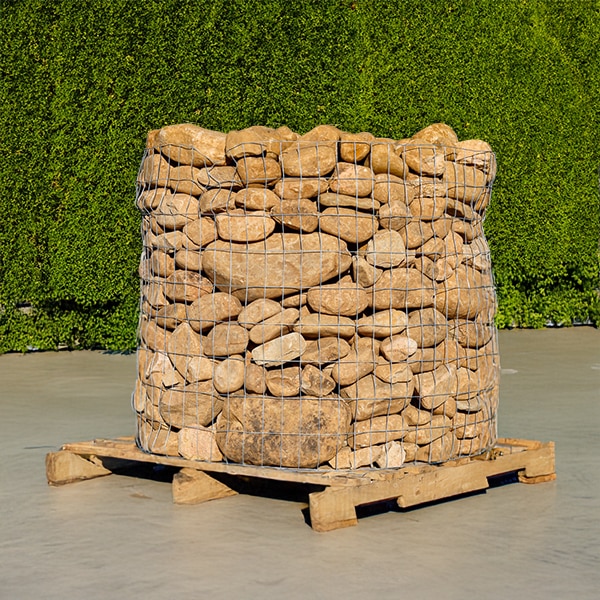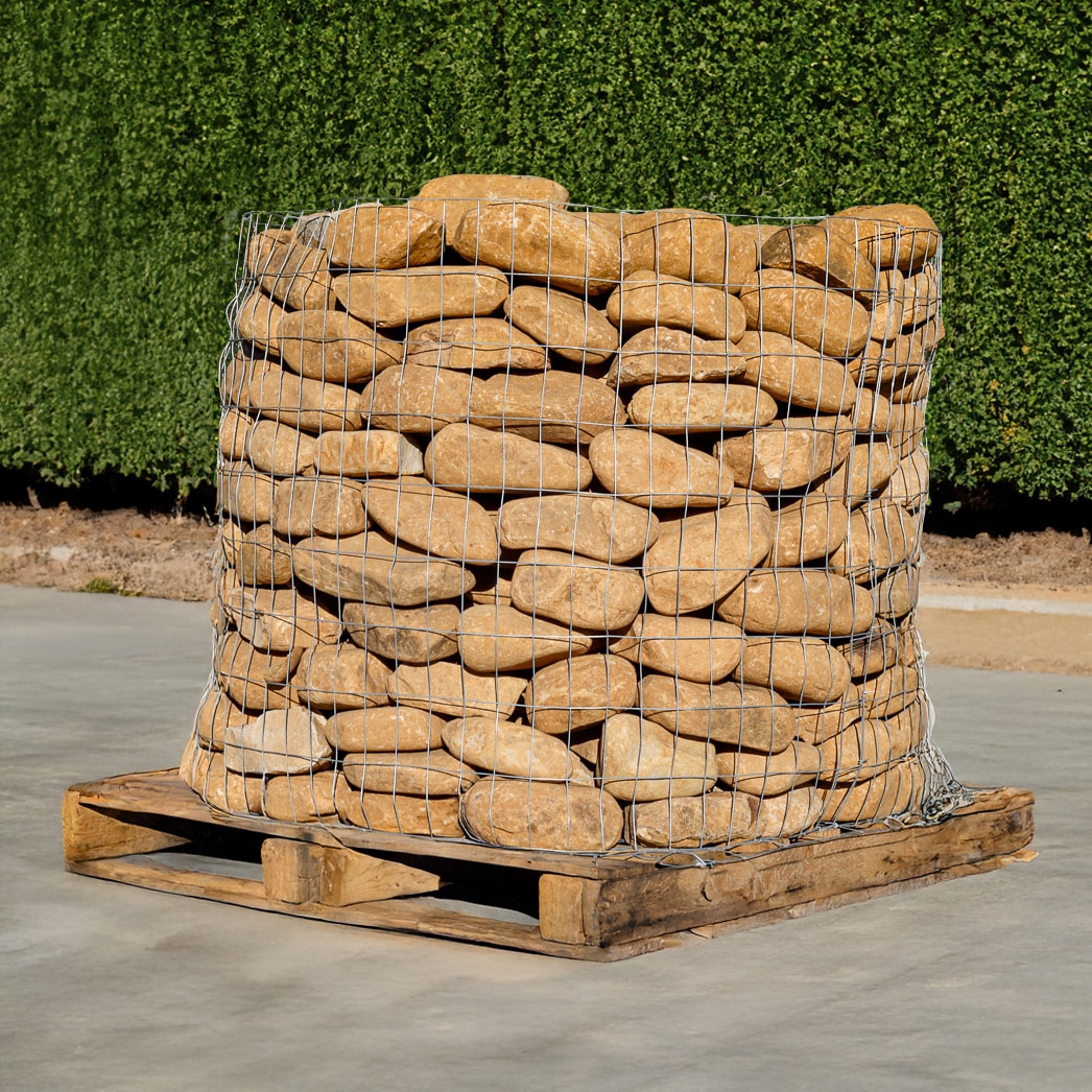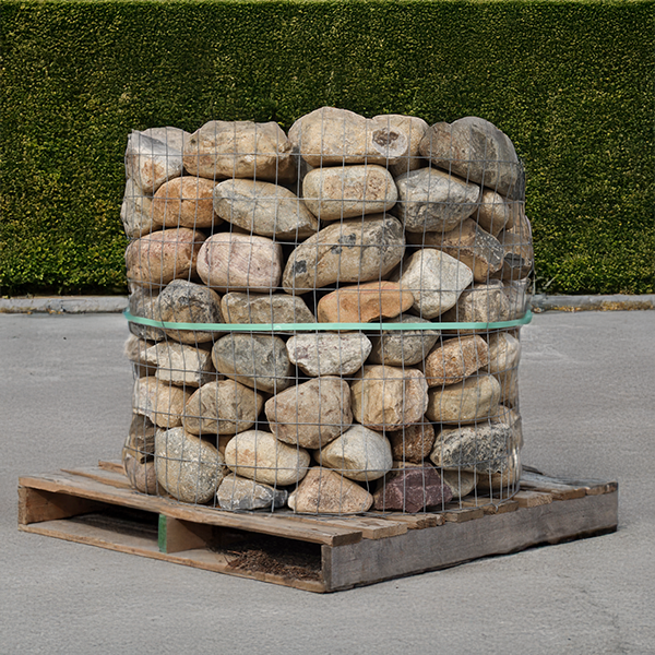 Medium River Round Rocks Pallet covers approximately 75 to 100 square ft and weighs approximately 1.5 tons (3000 lbs). These river rocks are rounded and tan in color, approximately 6 to 8 inches in length. Perfect for river beds, gardens, flower beds or decorative borders. Also, great for water features, such as ponds and fountains. These can also be used for drainage areas, such as French drains or around gutters.Price Per Pallet: